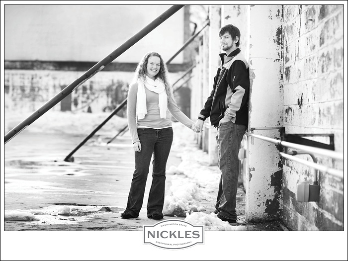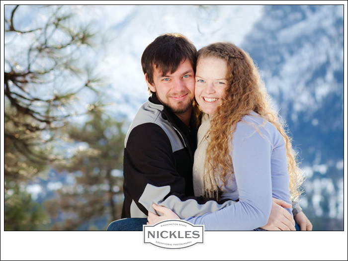 “Well, I kind of like you”. That is how Jake proposed to Theresa. They had met while working at camp and had dated for a while. But when it came time to popping the question, well… he got a little tongue tied. It didn’t matter because Theresa already knew that he was the one for her. The term “opposites attract” should be the title of their love story. She is the oldest of 8 and he is an only child. He is quiet while she has that infectious happy outgoing personality. But the most important thing they do have in common: their faith and commitment to each other. After picking out her dress from One Stop Bridal in Wenatchee she called us up for pictures. We had a fun, very c.o.l.d. afternoon walking around Leavenworth on New Year’s Eve getting to know them. We are looking forward to their June wedding in Leavenworth!